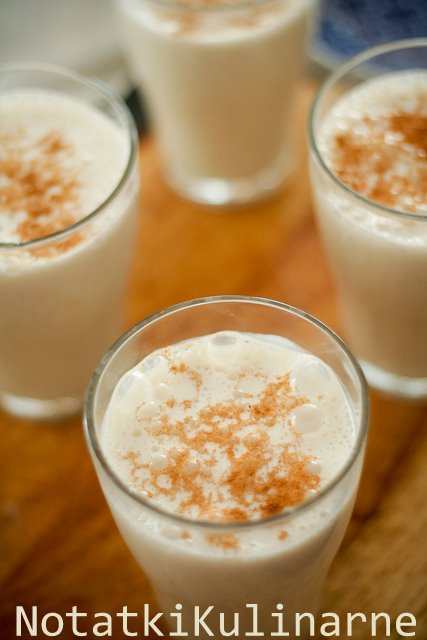 5. Wyjąć cynamon, przelać całość do blendera, miksować 2 minuty. Dodać wody, jeśli będzie za gęste.
