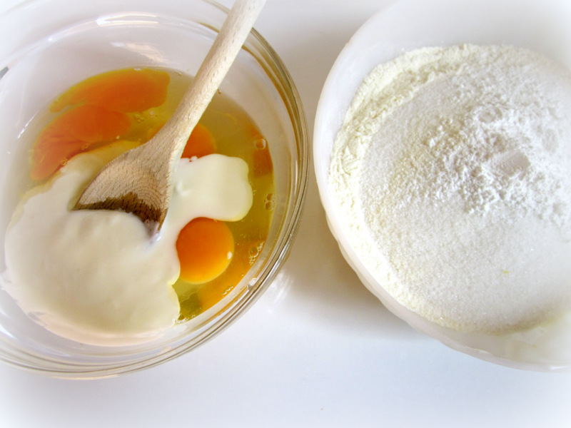 -Piekarnik nagrzać do temperatury 170 st. C -Foremkę nasmarować dokładnie tłuszczem i wysypać mąką lub bułką tartą. -Jajka wymieszać dokładnie z jogurtem i olejem.