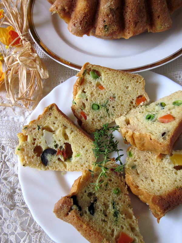 Zamiast warzyw do ciasta można dodać pokrojoną w kostkę szynkę lub inną ulubioną wędlinę ,a babkę można upiec w foremkach dowolnej wielkości i kształtu.