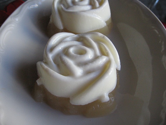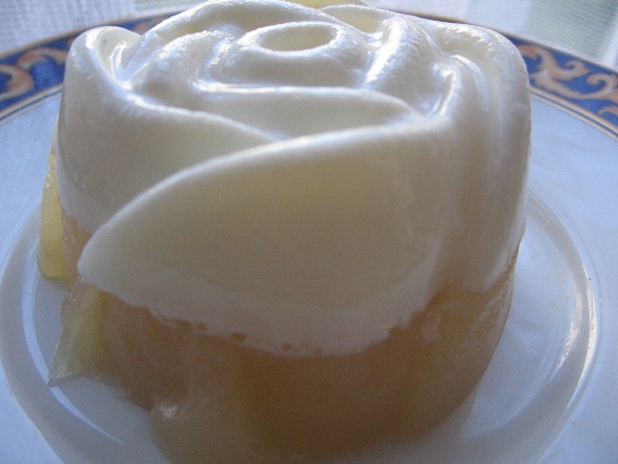 Zagotowałam mleko z ksylitolem i agarem i wlałam je do foremek na mufinki. Jabłka obrałam ze skórki, pokroiłam na kawałki i rozgotowałam w szklance wody z łyżką ksylitolu. Całość zmiksowałam, dodałam agar i wylałam na białą masę. Deser jest gotowy po 30 minutach w lodówce. jest pyszny, słodki i zdrowy:)