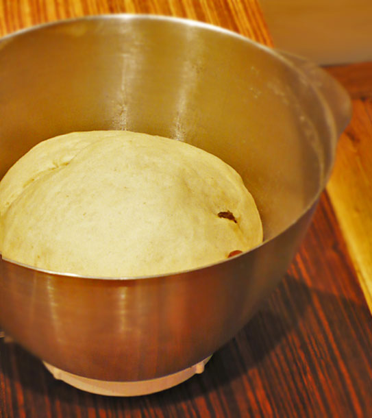 - Do mąki dodajemy drożdże, cukier, sól. Powoli wlewamy letni płyn i zaczynamy wyrabiać ciasto na bułeczki. Po 5 minutach dosypujemy rodzynki i wyrabiamy jeszcze chwilę. Ciasto przekładamy do misy, przykrywamy ją folią lub ściereczką i stawiamy w ciepłym miejscu bez przeciągów.