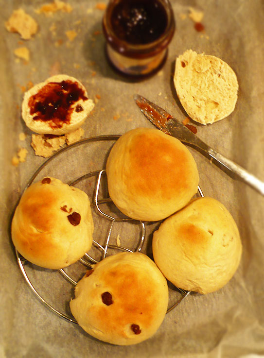 Maślane bułeczki są tak pyszne, że nie potrzebują już zbędnych dodatków. Chociaż przyznam, że podobnie na sucho, lubię je także z powidłami śliwkowymi, czy słodkim twarożkiem.