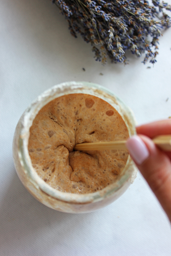 - Do misy wsypujemy mąki, dodajemy aktywny zakwas, suszoną lawendę i sól. Wlewamy letnią wodę, wyrabiamy ciasto 5 minut. Zostawiamy je w misie pod przykryciem na 2 godziny.