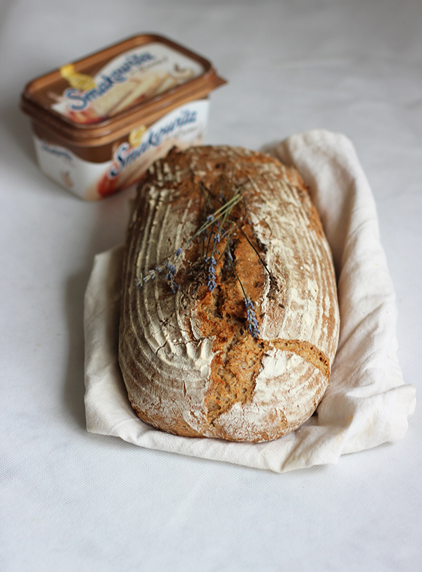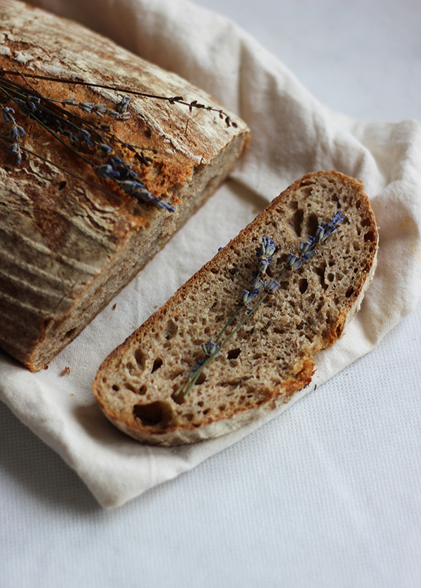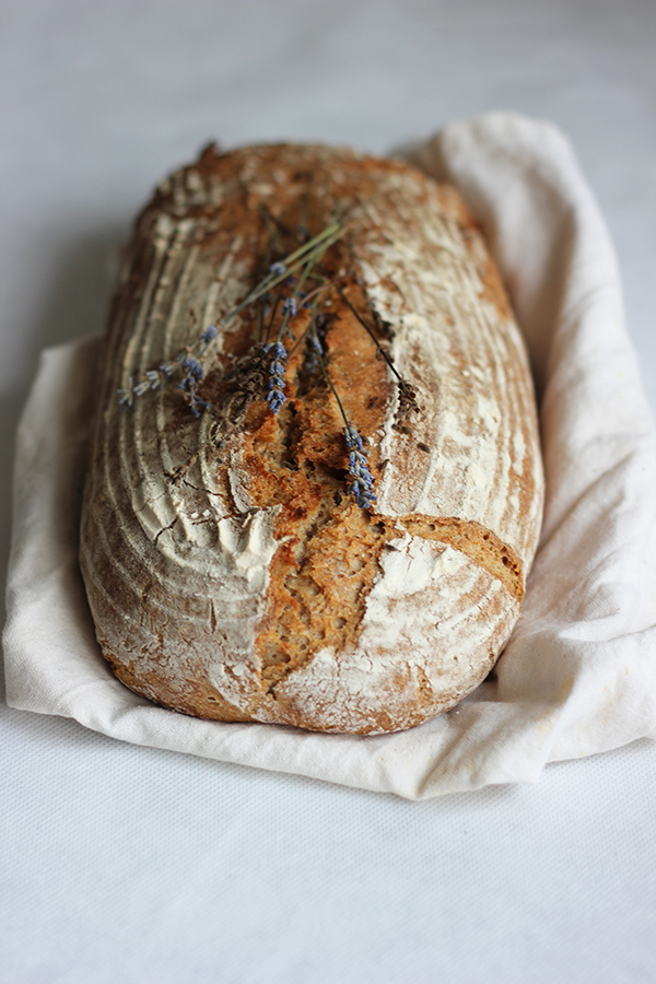 Niedawno miałam przyjemność odwiedzić cudownie pachnące Lawendowe Pole. Gospodarstwo znajduje się na Warmii, jest tam przepięknie, a na miejscu można nie tylko spacerować, ale także wziąć udział w warsztatach np. robienia lawendowego olejku. Do domu wróciłam między innymi z suszonym bukiecikiem kwiatów i stwierdziłam, że lawenda idealnie będzie się nadawała jako dodatek do rustykalnego chleba na zakwasie.