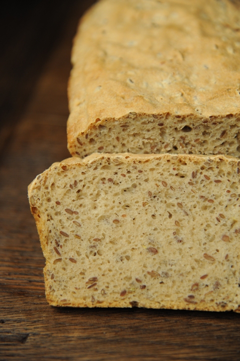 Może część z Was miała do czynienia z siemieniem lnianym w przykrych przypadkach podrażnień układu pokarmowego. Ziarna zalane wodą po jakimś czasie zaczynają tworzyć galaretowatą maź, która (przynajmniej dla mnie) jest bardzo nieprzyjemna do wypicia. Siemię lniane jednak świetnie sprawdza się do „zwilgotnienia” miąższu chleba. Dzięki niemu możemy cieszyć się chlebem, który smakuje niczym rasowy zakwasowiec, bez czekania i konieczności hodowania zakwasu.
