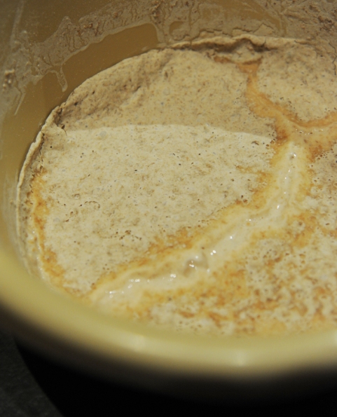 - Połącz ze sobą w misce składniki na zaczyn. Wymieszaj, przykryj miskę materiałową szmatką i odstaw na 12-18 h w ciepłe miejsce.