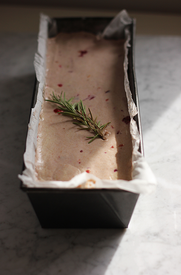 - Ciasto przekładamy do keksówki (12x24 cm) posmarowanej oliwą i wyłożonej pergaminem. Wierzch wyrównujemy zwilżoną wodą łyżką (lub dłonią) i dekorujemy gałązką rozmarynu. Przykrywamy na 4 h.