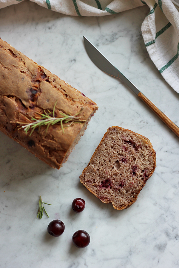 Chleb żytni na zakwasie z wiśniami i rozmarynem
