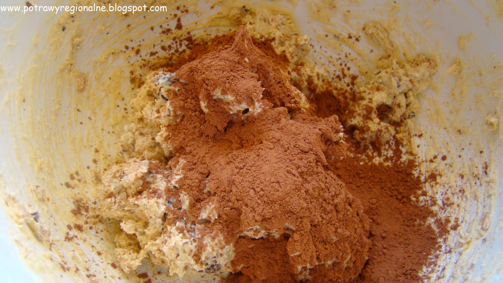 Wszystko dokładnie wymieszałam.Ciasto podzieliłam na dwie części.Do jednej części dodałam kakao.