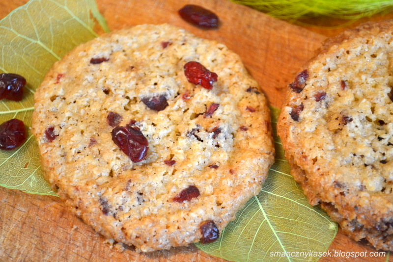 Tym razem na stole zagościły, bardzo przyjemne, ciasteczka owsiane z żurawiną, prawie bez dodatku mąki.
