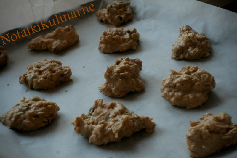 Ciastka owsiane z dynią, białą czekoladą, żurawiną i wiśniami