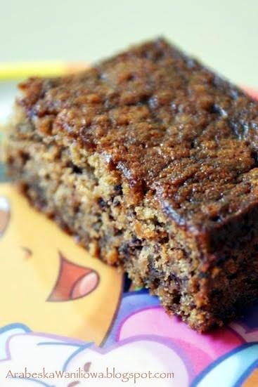 Ten przepis znalazłam na blogu Abbry. Ciasto w jej wykonaniu wyglądało bardzo zachęcająco , tym bardziej , że lubię wilgotne ciasta. Jednak moje wyszło zdecydowanie zbyt mokre. Dosyć dobre , ale jednak następnym razem będę trzymała się oryginalnego przepisu. Poniżej podaję obydwie wersje.