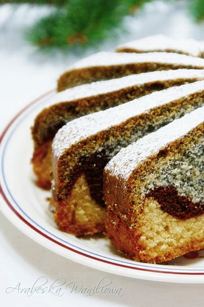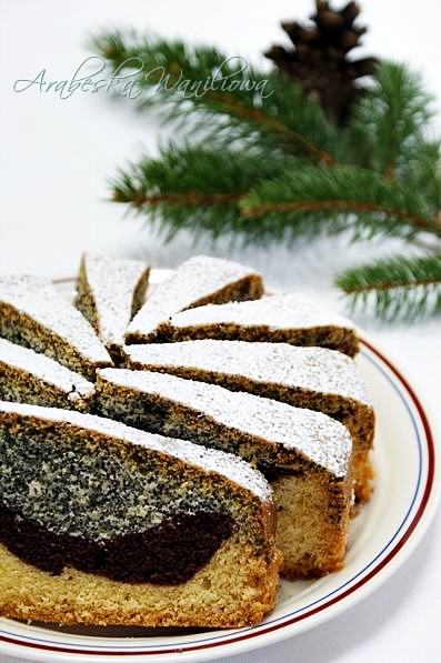 Wiem, że krąży po sieci przepis na podobne ciasto, tyle tylko, że z dodatkiem czwartego koloru. Musi trochę poczekać na swoją kolejkę ;-) A póki co zapraszam na "trójniaka". Ostatnio piekłam go jeszcze przed założeniem bloga i sama nie wiem dlaczego dopiero teraz do niego wracam. Ciasto bardzo mi smakowało. Poza tym ładnie wygląda, a przez dodatek maku szczególnie "pasuje" do świątecznego stołu.
