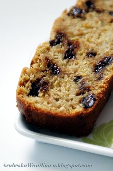 Do tej pory piekłam tylko jeden rodzaj ciasta z użyciem świeżych warzyw - było to ciasto marchewkowe (swoją drogą bardzo dobre). Postanowiłam zatem spróbować innego warzywa , a mianowicie cukinii. Nie było to wcale odkrywcze , bo na ten pomysł ktoś już wpadł dawno temu , tylko ja jak zwykle się ociągałam (a przepis w notatniku prawie wyblakł ;-) Ale do rzeczy. Ciasto wyszło bardzo smaczne - aromatyczne i mocno wilgotne , czyli takie jak lubię. Do tego jeszcze kawałeczki rozpuszczonej czekolady i rodzynki (czy co tam sobie życzycie).