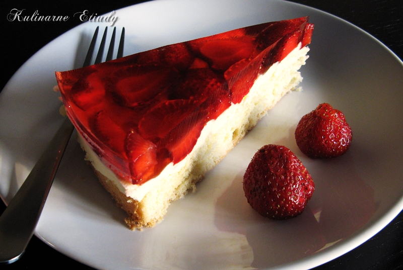 Ostatnio jakoś nie mam weny do pisania, już nawet nie wiem ile przepisów czeka na opisanie. Jak na razie tylko je wypróbowałem i obfotografowałem. Już wrzucam przepis na ciasto truskawkowe, póki jeszcze można je kupić, niedługo zacznę publikować przepisy daawno po sezonie, w którym najlepiej je robić. To ciasto zrobiłem na życzenie mojej koleżanki z pracy. Kiedyś coś powiedziała, że ma ochotę na biszkopt z truskawkami i galaretką. Po tej wypowiedzi tez nabrałem ochoty - bardzo fajne połączenie. Jest przy tym trochę więcej pracy niż przy ubiciu śmietany do truskawek, ale warto.