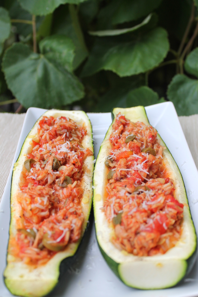 Cukinia faszerowana nadzieniem przygotowanym z tuńczyka, ryżu, papryki i oliwek w sosie pomidorowym. Całość zapieczona z niewielką ilością parmezanu. Lekkie, a jednocześnie syte danie, bardzo smaczne i aromatyczne - idealne na obiad lub ciepłą kolację.