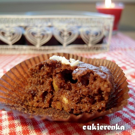Ten wypiek znajdzie swoich amatorów wśród zwolenników ciemnej, gorzkiej czekolady. Babeczki są mało słodkie, gorzkawe, kakaowe, ciasto jest bardzo mięciutkie, puszyste, chili lekko szczypie w język a migdały chrupią między zębami. Smakowały i dorosłym i dzieciom :). Dla mnie odrobinę zbyt wytrawne, wolę słodsze wypieki. Przepis łatwy i szybki w wykonaniu pochodzi z książeczki: "Nowa kuchnia włoska. Babeczki."