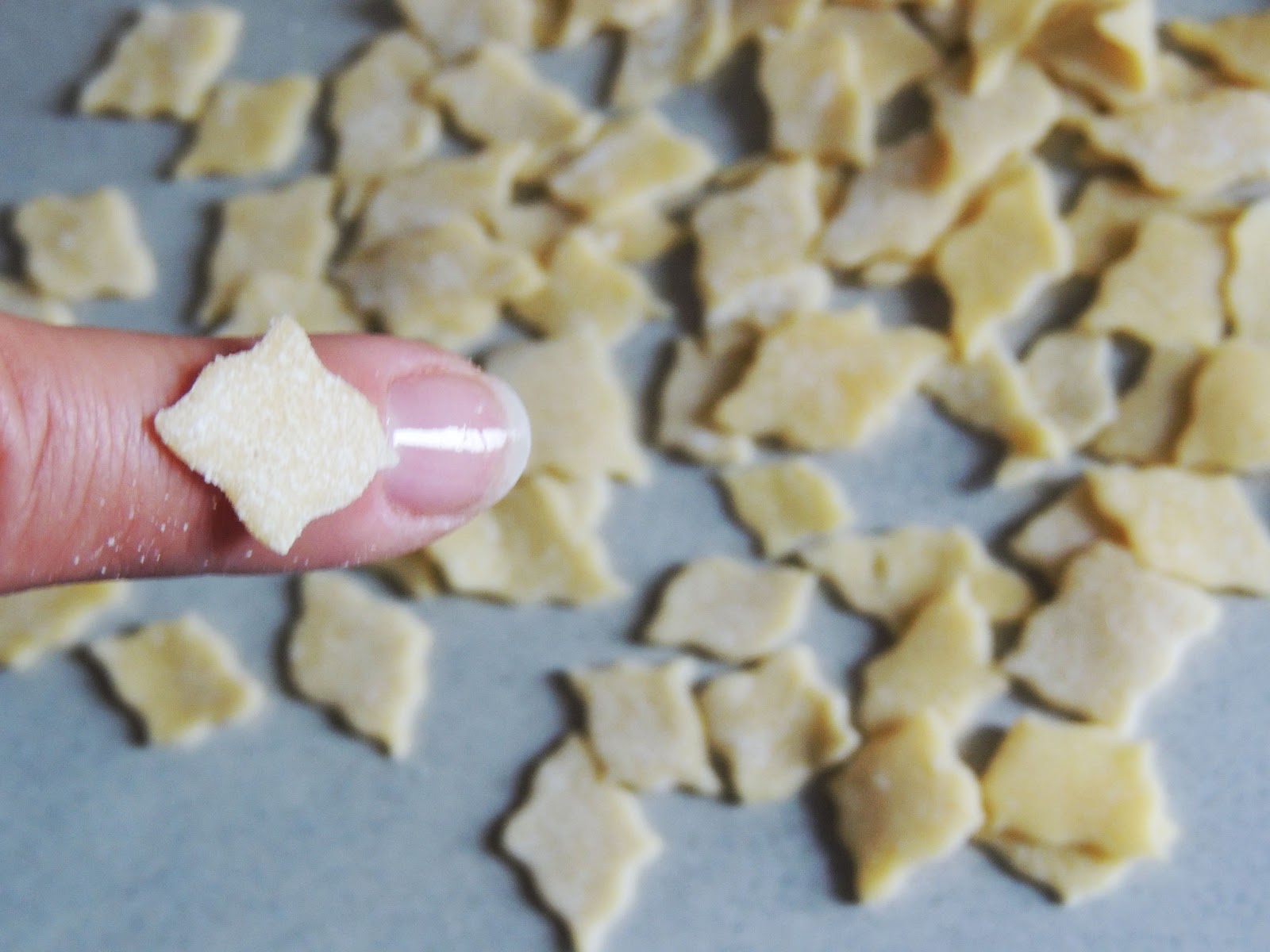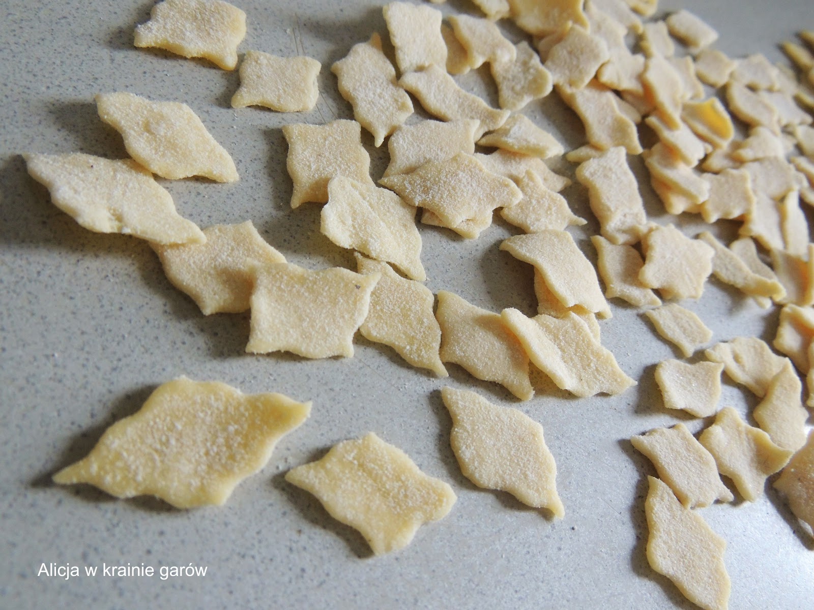 Zdjęcie poniżej obrazuje wielkość kluseczek - łazanka i mój palec wskazujący :)