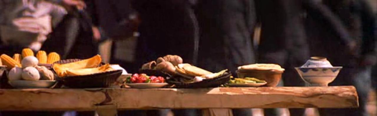 Syn zaczyna opowiadać o tym jak poznali się jego rodzice, że historia ich poznania znana była całej wsi. Zalotne spojrzenia, uśmiechy, gesty i jedzenie. Ojciec Luo Yushenga przyjeżdza do wioski jako młody nauczyciel pomagając na początku przy budowie nie gotowego jeszcze budynku szkoły, aby później móc uczyć miejscowe dzieci. Matka z kolei jest uważana za najpiękniejszą dziewczynę w wiosce, to jej przypada zaszczyt utkania szczęśliwej szarfy, która wedle tradycji musi zawisnąć w każdym nowym budynku. Aby posilić mężczyzn pracujących przy budowie szkoły Zhao Di przygotowuje również swoje specjalne potrawy, z nadzieją, że to właśnie jej miskę wybierze ukochany...