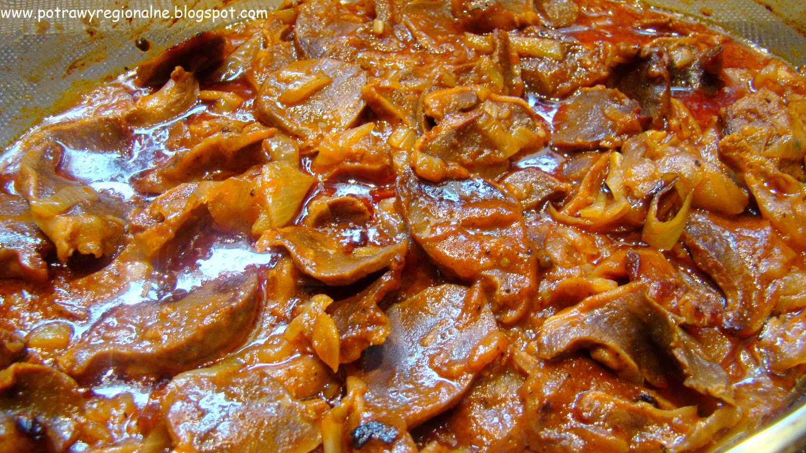 Duszone żołądki indycze z cebulą
