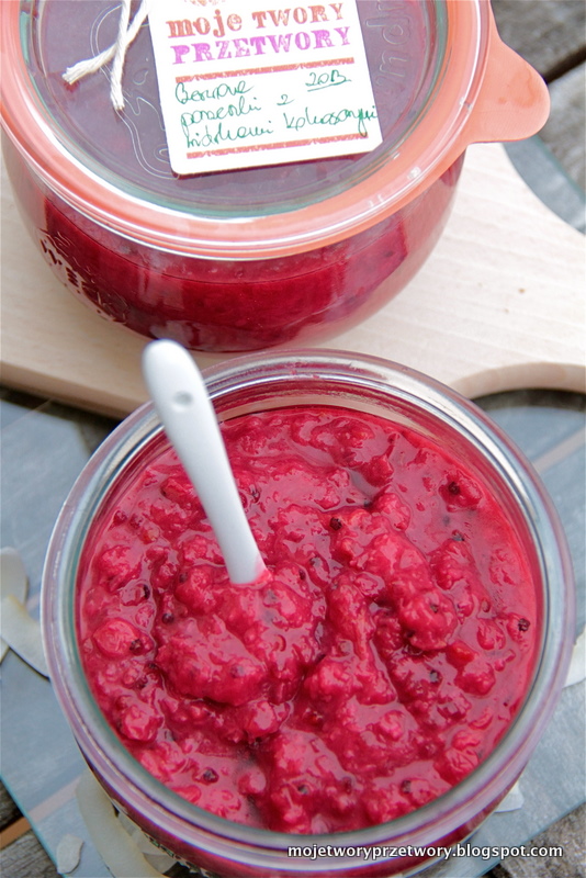 - wiórki kokosowe przelać wrzątkiem, dodać do porzeczek, pogotować razem z 25-30 minut