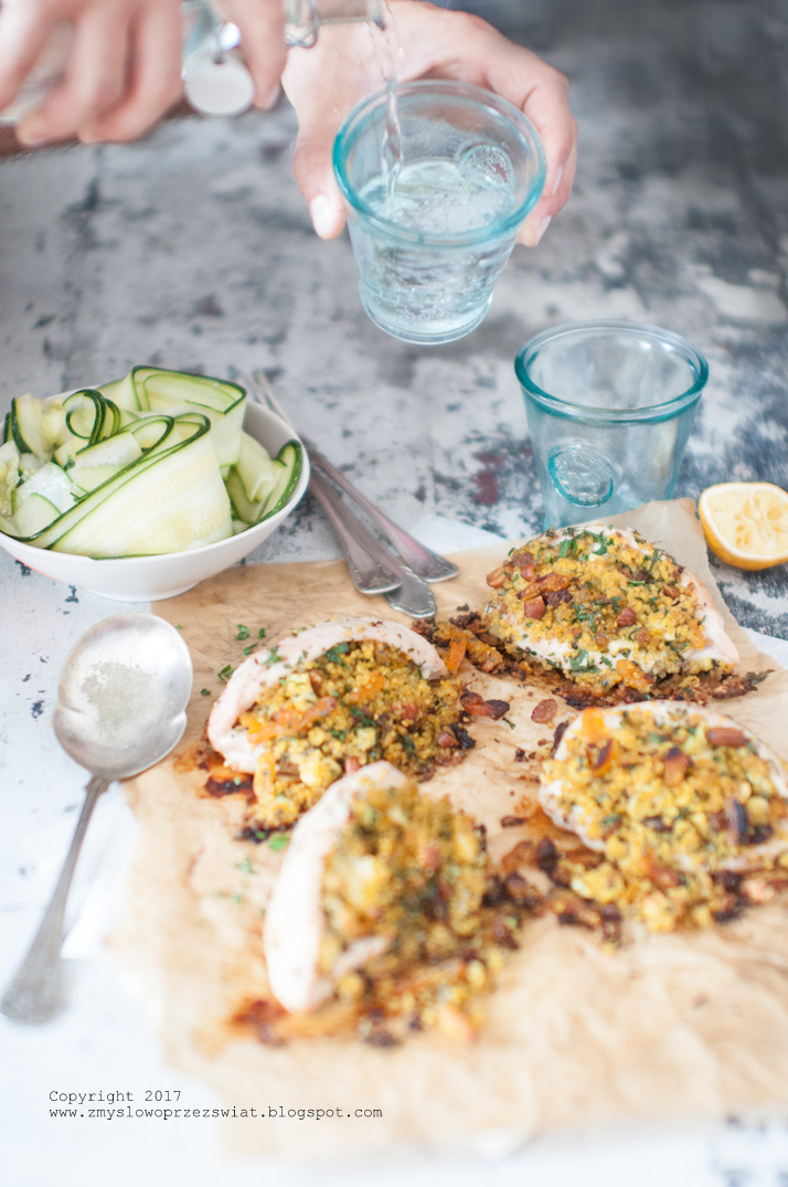 Filety z kurczaka nadziewane kaszą jaglaną; po marokańsku