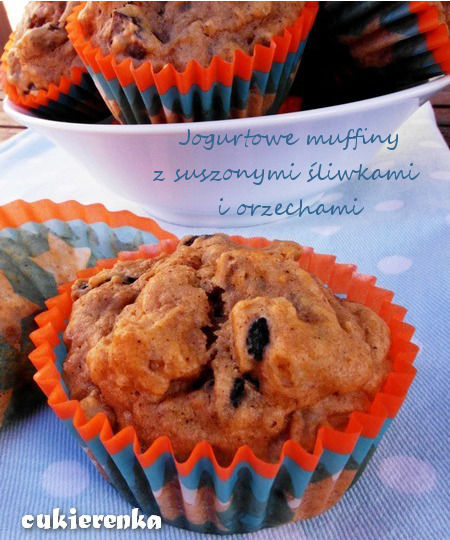 Jogurtowe muffiny z suszonymi śliwkami i orzechami