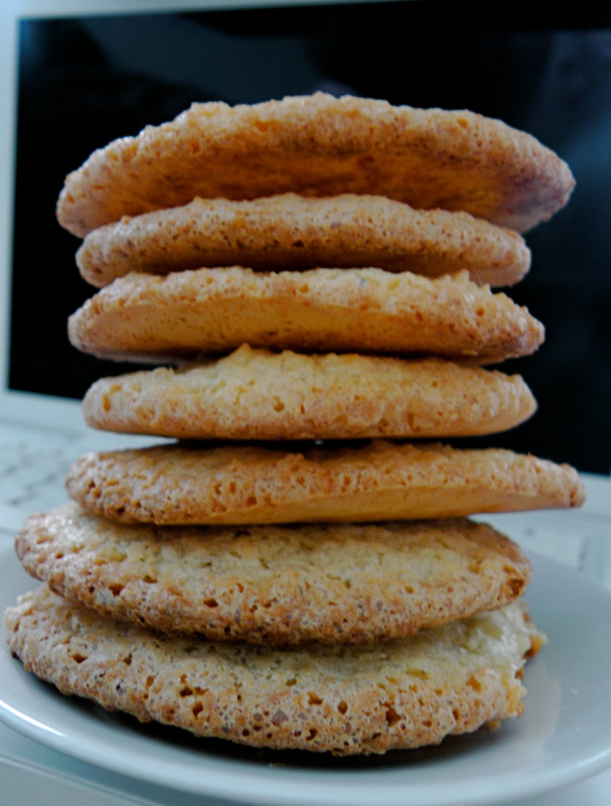 ... choć chyba bliżej im do ciasteczek kokosowych. Robiłam je pierwszy raz: wizualnie debiut niezbyt udany, ale podobno i tak są smaczne ;) Może następnym razem dodam mąki, żeby zagęścić ciasto. Kolejny przepis z książki "Moje Wypieki". Przepis dostępny również na blogu Dorotus