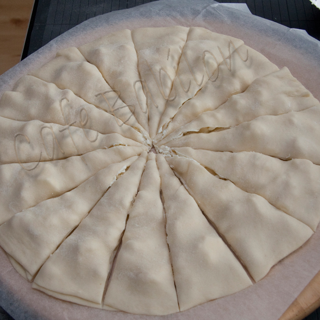 Powstałe rogaliki układać w tortownicy wyłożonej papierem.