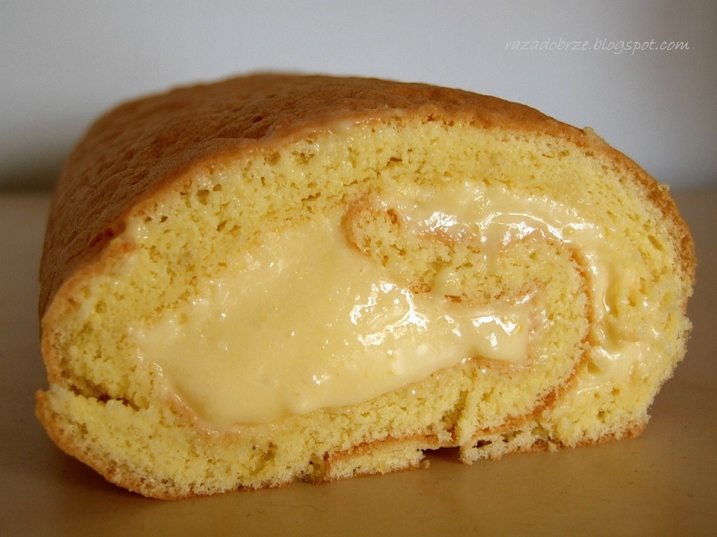 Teraz, jeśli jeszcze ktoś tu w ogóle jest, chciałaby zaprosić Was na roladę. Pierwszą, jaką przygotowałam. W ramach doskonalenia siebie i pokonywania lęków, postanowiłam w końcu spróbować. Przepis wyszukałam w gazetce Moje gotowanie: Ciasta: Biszkopty. Zdecydowałam się akurat na ten, bo wydał mi się dość prosty, a poza tym uwielbiam lemon curd, więc nawet jakby bardzo źle wyglądało, to i tak bym zjadła. Na szczęście, jak na pierwszy raz, wygląd jest całkiem przyzwoity. Biszkopt ładnie się zwinął, nadzienie nie wypłynęło, więc wszystko było, jak należy. Jedyne, do czego moi Panowie mieli zastrzeżenia, to właśnie ten cytrynowy smak... Dla nich ciasto było nieco za kwaśne, ale podane ze słodką bitą śmietaną grzecznie jedli, więc aż tak złe chyba jednak nie było... Według mnie kwaśno-słodkie w sam raz, ale jak już wspomniałam, jestem fanką cytrynowego do bólu kremu... Ciasto jest szybkie i, wbrew pozorom, naprawdę proste. Przygotowanie i upieczenie biszkoptu to moment, krem też wiele czasu nie zajmuje, przełożenie to sama przyjemność - i tylko poczekać trzeba, aż się schłodzi... Ale do tego potrzeba tylko odrobiny silnej woli, więc sądzę, że każdy da radę.Także, jeśli boicie się rolad, uwierzcie - to nic trudnego! Trzeba się tylko przełamać.