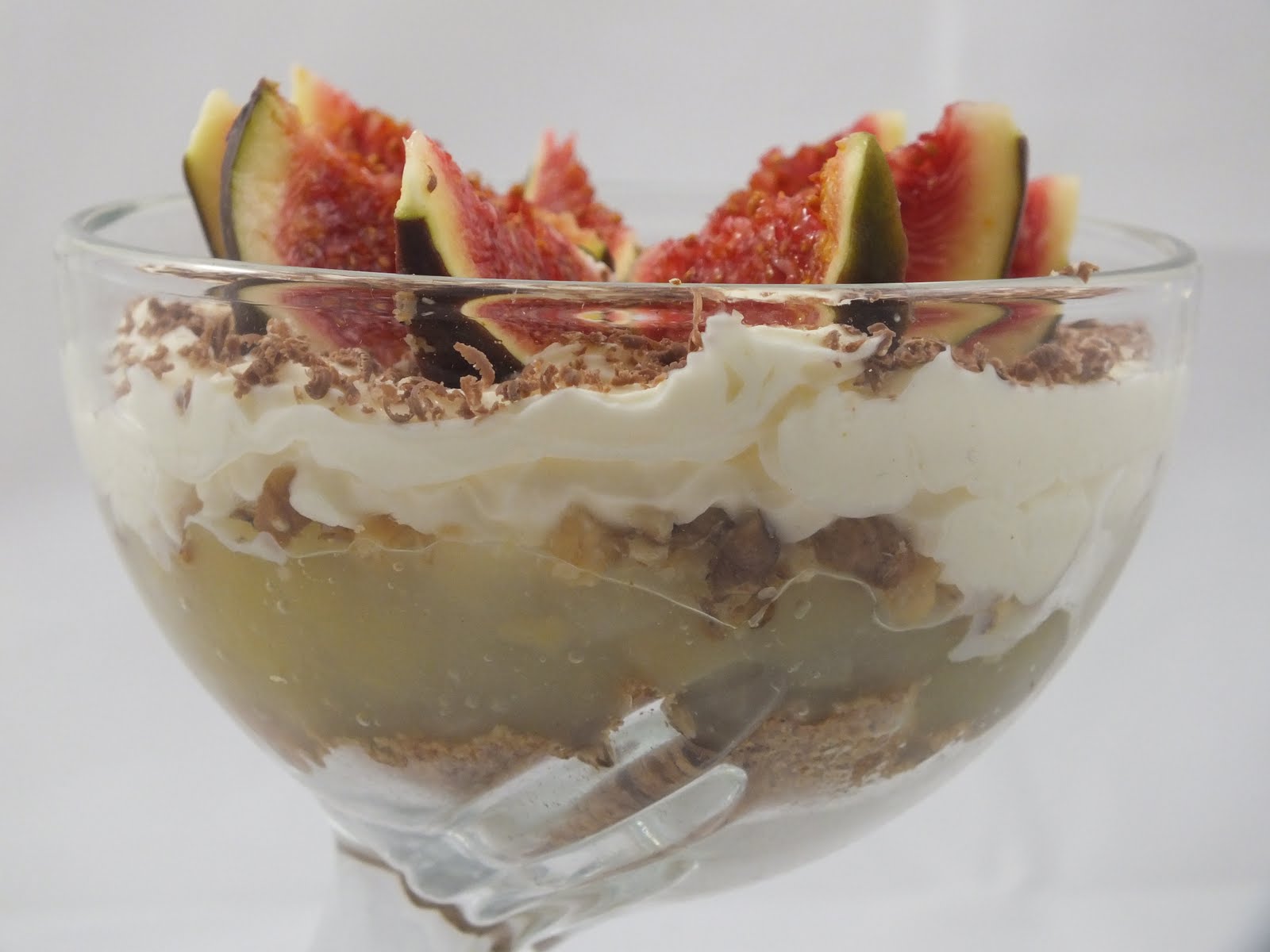 Przepyszny jesienny deser…Krem z serka mascarpone z dodatkiem amaretto na korzennych ciasteczkach i delikatnym musie jabłkowym. Wszystko z dodatkiem świeżych, słodkich fig…niebiański smak…