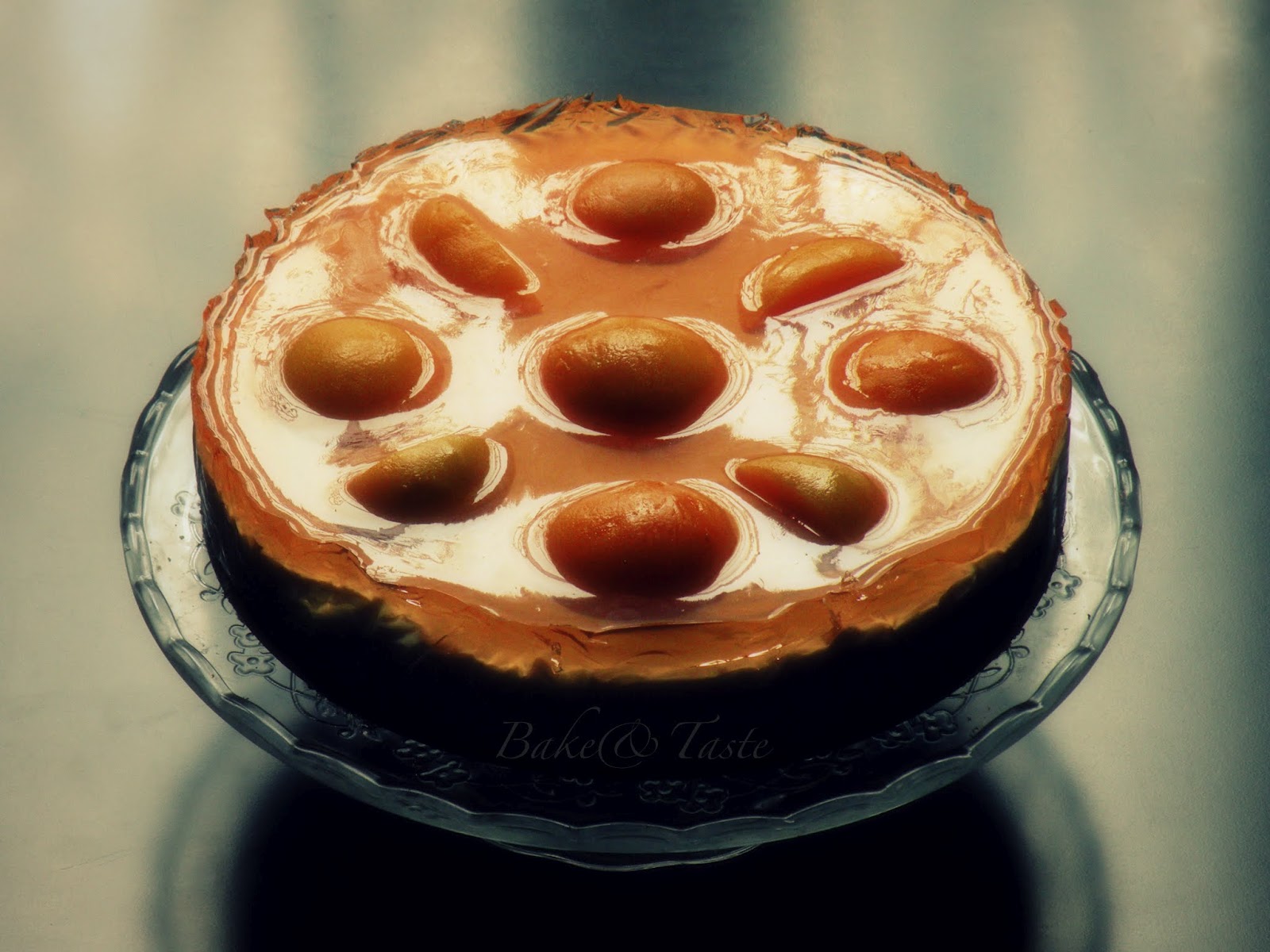 Tortownicę (o średnicy ok. 26 cm) szczelnie wyłożyć folią spożywczą. Na spód wysypać pokruszone herbatniki (wystarczy je rozkruszyć dłońmi). Miękkie masło utrzeć z cukrem i cukrem wanilinowym. Do masy, ciągle ucierając, dodawać po jednym żółtku. Do jednolitej masy dodawać porcjami ser, nie przerywając miksowania. Rozpuścić żelatynę w niewielkiej ilości wody i po lekkim przestudzeniu powoli wlewać do masy serowej - ciągle mieszając mikserem. Gotową masę wylać do tortownicy wyłożonej herbatnikami. Formę wsadzić do lodówki na ok. 1/2 godziny do lekkiego stężenia masy serowej. W tym czasie przygotować galaretkę według przepisu na opakowaniu i pozostawić aby trochę przestygła. Kiedy galaretka zacznie tężeć wyjąć tortownicę, na masie serowej ułożyć brzoskwinie po czym wylać na całość galaretkę. Sernik schłodzić przez kilka godzin w lodówce. Przechowywać również w lodówce.