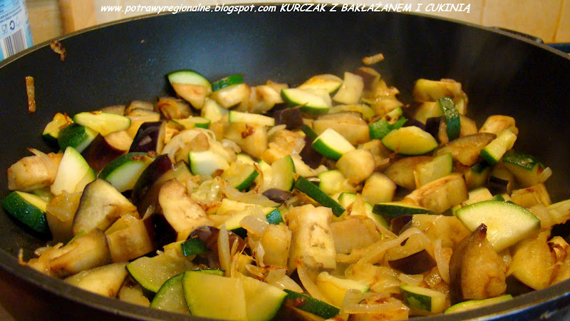 Cukinię również pokroiłam i podsmażyłam z bakłażanem i cebulą.