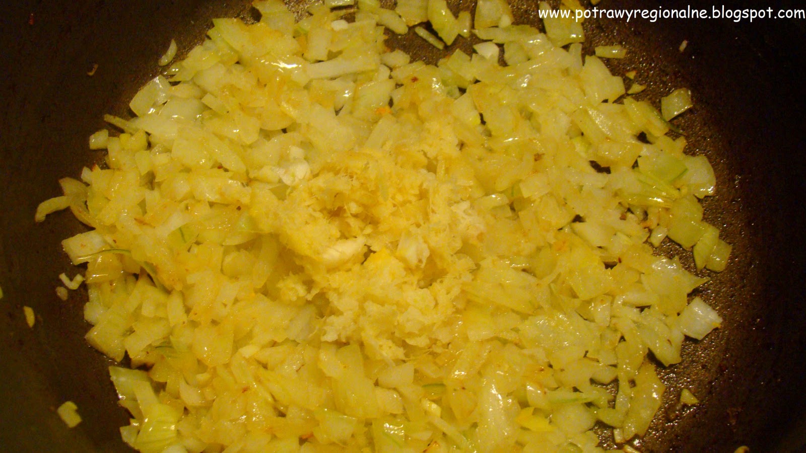Podsmażyłam pokrojoną drobno cebulę.Dorzuciłam do niej starty drobno imbir i czosnek.