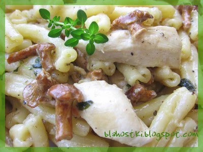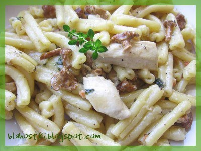 Skuszona na bazarku widokiem kurek, postanowiłam coś z nich wyczarować na kolację. Ponieważ od jakiegoś czasu chodziła za mną ochota na makaron, wypadło na taką oto makaronową improwizację. Kurki bardzo szybko się przyrządza, nie wymagają wiele pracy. No, może trzeba poświęcić trochę czasu, aby je dobrze oczyścić. Podobno powinno się je oczyszczać pędzelkiem na sucho, jednak dla mnie coś, co nie zostało umyte w wodzie, jest brudne. Tak więc najlepiej każdy grzyb z osobna delikatnie oczyścić pod bieżącą wodą. Grzybów nie należy moczyć, gdyż szybko chłoną wodę. Gdy uporamy się z oczyszczeniem grzybów, w 15 minut mamy pyszną kolację.