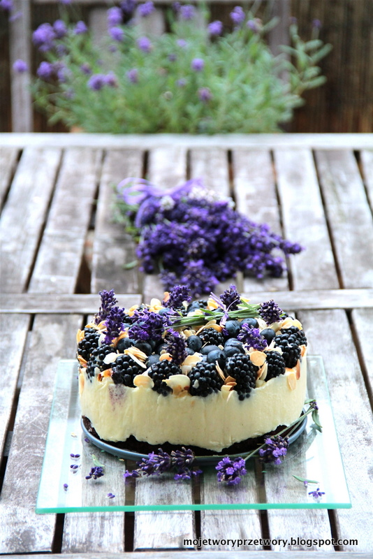 - ciasto ozdabiamy kwiatami lawendy, schaładzamy w lodówce przynajmniej 2-3 godziny