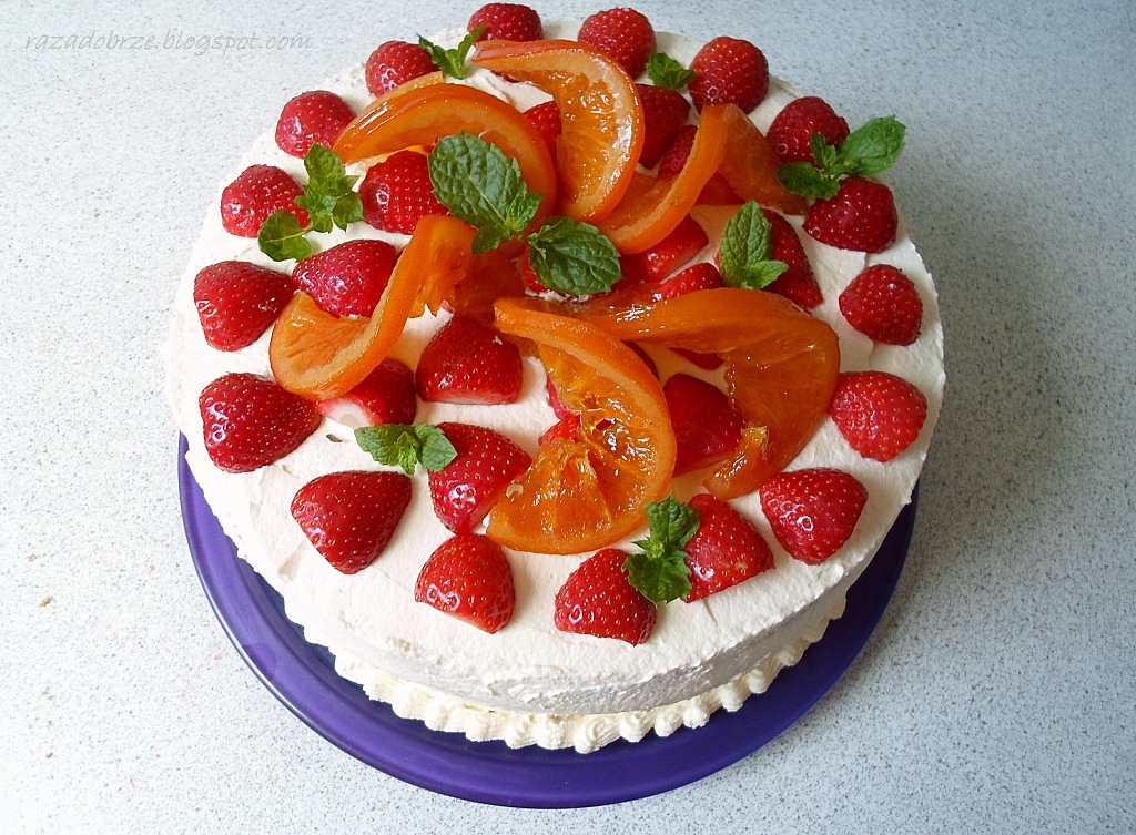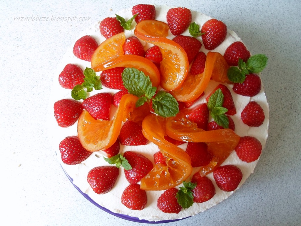 Tort waniliowy z truskawkami i nutą pomarańczy