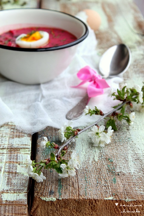 Jesienią i zimą przyrządzam barszcz ukraiński- z korzeni buraków zwyczajnych, za to wiosną i latem najczęściej gotuję barszcz z botwinką, czyli młodymi buraczkami ćwikłowymi wraz z liśćmi. Też go lubicie? Ja muszę przyznać, że od niedawna .. kiedyś nie wyobrażałam sobie zjedzenia chociażby łyżki tej potrawy.