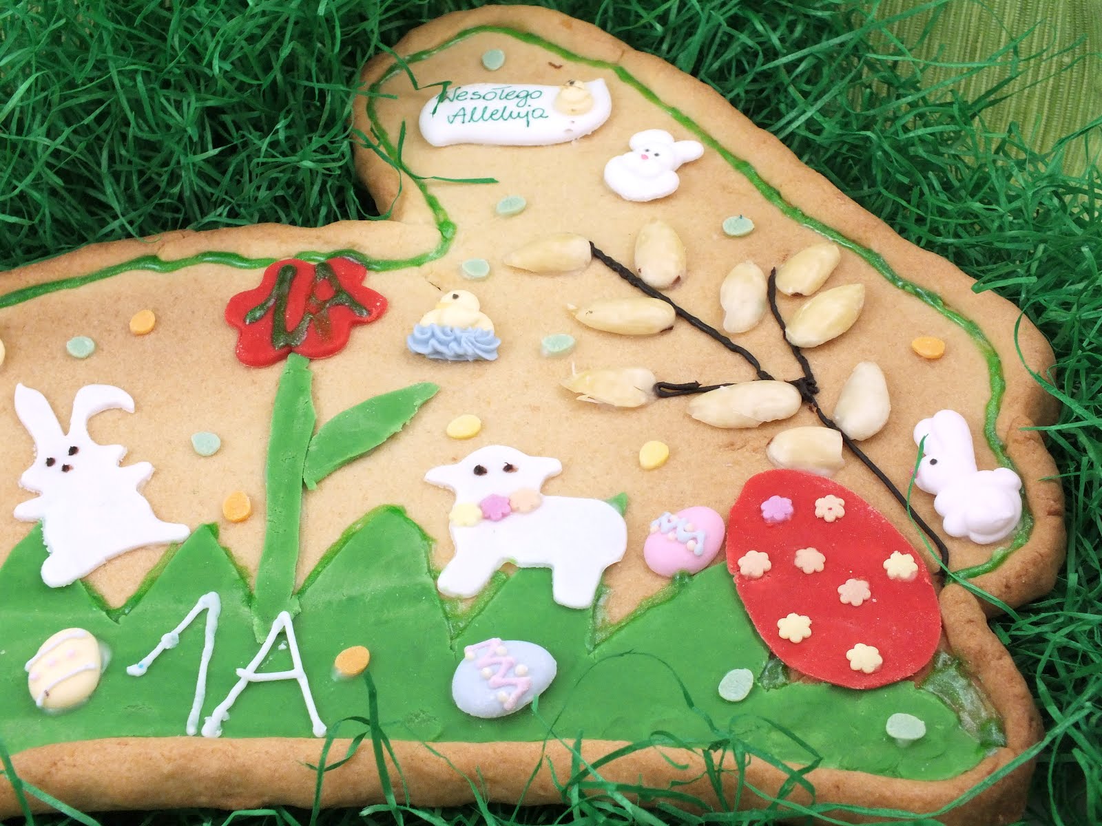 Mazurek w kształcie zajączka przygotowany na szkolne, wielkanocne śniadanko. Prosty do wykonania, ale czasochłonny. O smaku musiałyby się wypowiedzieć pierwszaki