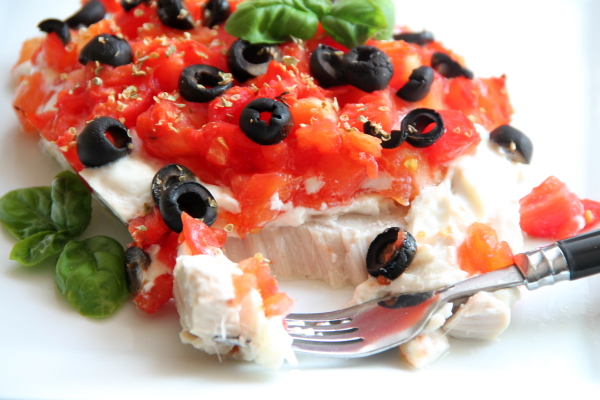 Połączenie delikatnego filetu rybnego z dobrą mozzarellą, oliwkami i pomidorami.