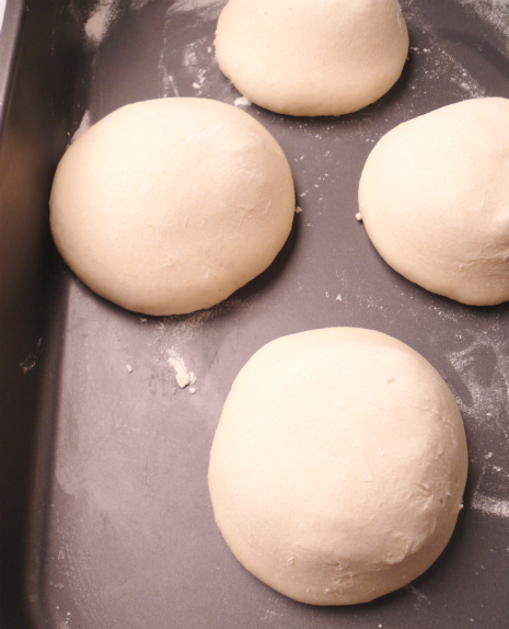 - Z każdego kawałka uformuj okrągłą bułeczkę i odstaw na wyłożonej papierem do pieczenia blasze. Przykryj blachę materiałową szmatką i odstaw w ciepłe miejsce na ok. 1,5 godziny.