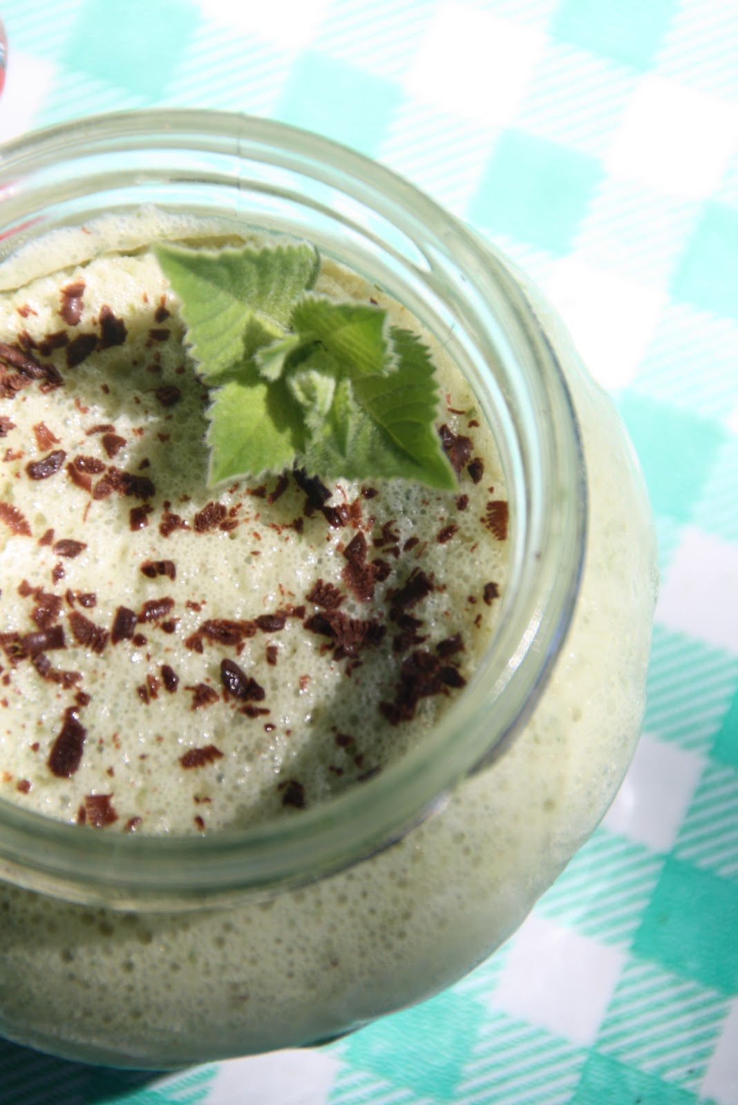 Macie ochotę się schłodzić choćby od wewnątrz? Polecam miętowy mrożony jogurt. Duży kubek jogurtu typu greckiego zmiksowałam ze szklanką świeżych listków mięty zerwanych prosto z ogródka. Do tego dodałam cukru do smaku i na koniec startą gorzką czekoladę. Wstawiłam do zamrażalnika na kilka godzin. W czasie mrożenia zmiksowałam go jeszcze 2 razy żeby pozbyć się grudek lodowych.