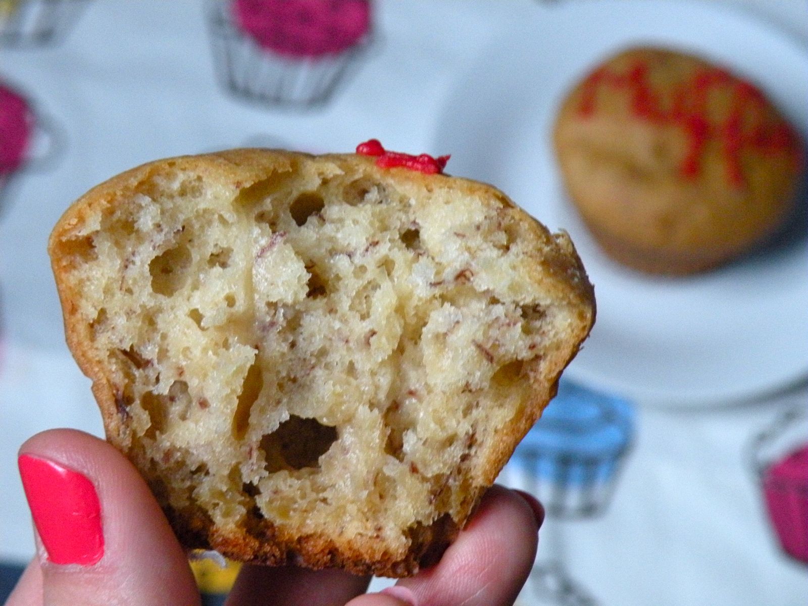 Ostatnio bardzo polubiłam słodkości na bazie bananów. Banany lubię, nawet bardzo, ale tylko te zielonkawe, niedojrzałe :) Przełamałam jednak smakowe i wizualne uprzedzenia względem bardzo dojrzałych - już lekko podczerniałych - bananów, i okazało się, że w wypiekach sprawdzają się idealnie. Były już placuszki, dziś proponuję Wam muffinki, a w planach jest również chlebek bananowy. Muffinki są puszyste, mięciutkie, wilgotne, aromatyczne i intensywnie bananowe w smaku. Dla bananowych smakoszy przepis idealny!
