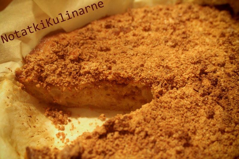 Najpierw był przepis znaleziony u Kwiecienki - na muffinki ze śliwkami i ciasteczkami amaretti...Spróbowałam przełożyć ten przepis na placek z jabłkami - i udało się :)