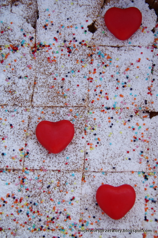 - piec około 1 godziny, wystudzić, obficie posypać cukrem pudrem