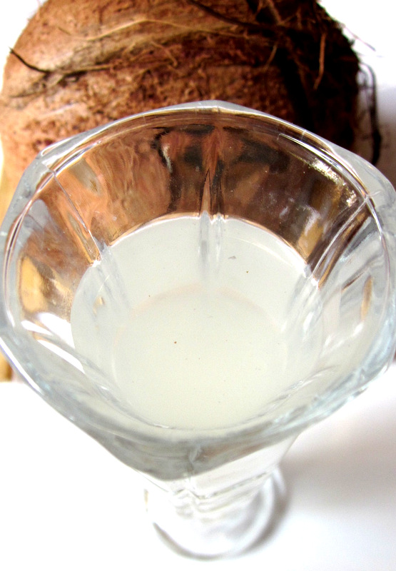 Starty lub rozdrobniony miąższ połączyć z wodą kokosową i mlekiem/ lub wodą /.Całość zblendować /w dobrym blenderze lub mikserze do koktajli/ na jednolity płyn.