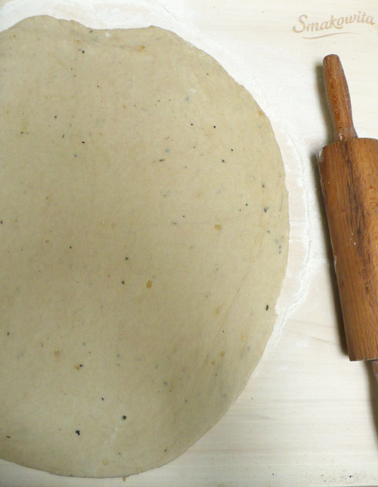 - Powoli wlewamy na przemian oliwę z letnią wodą i wyrabiamy ciasto mikserem. Po 8 minutach, ciasto w formie kuli przekładamy do nowej misy oprószonej mąką. Przykrywamy je folią spożywczą i stawiamy w ciepłym miejscu bez przeciągów na godzinę.