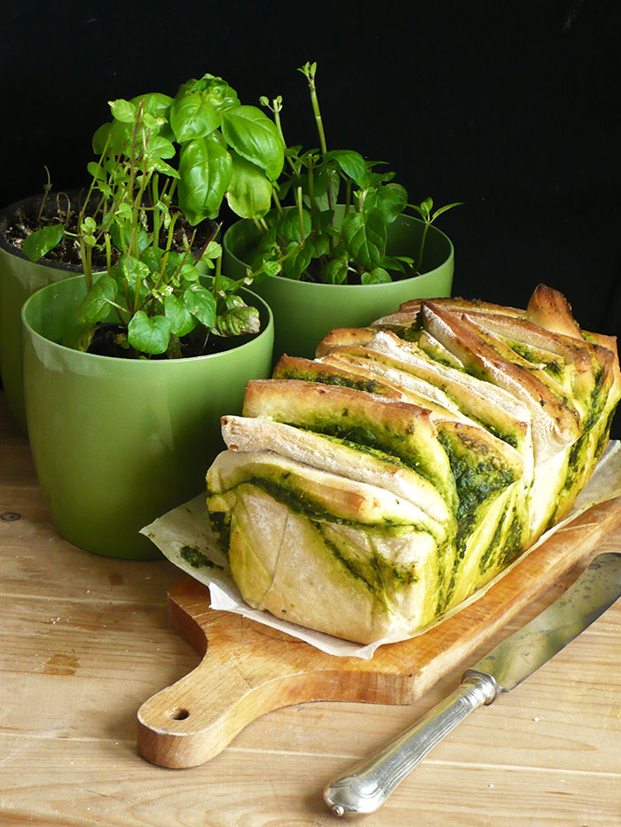 Od czasu do czasu wracam do przepisu na ziołowe zawijańce . Są to zawinięte, bardzo puszyste bułeczki z pesto, które przytulone obok siebie tworzą chlebek. Po upieczeniu łatwo je oderwać do siebie, a wystawione na imprezie, czy grillu wróżą sukces i pochwały gości.