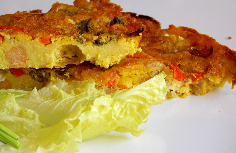 Smakuje zupełnie jak prawdziwy jajeczny omlet. Jest to włoski placek z mąki z ciecierzycy , nazywany farinatą /cieciną/ w nieco odmiennej wersji....