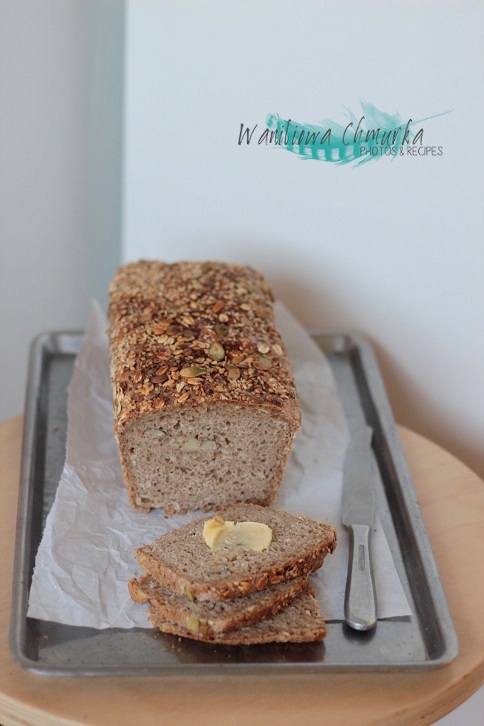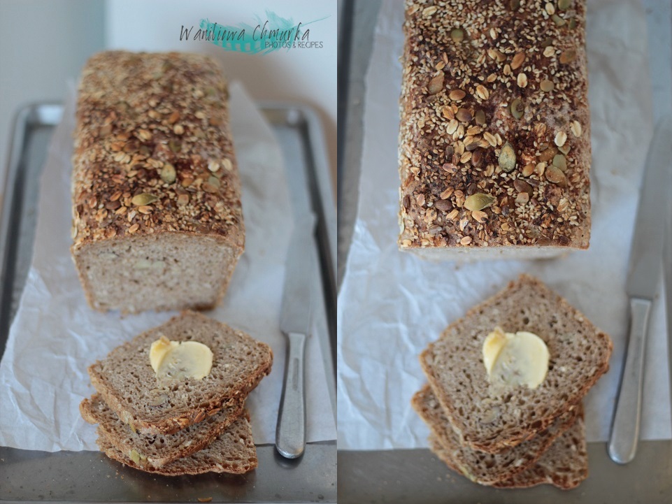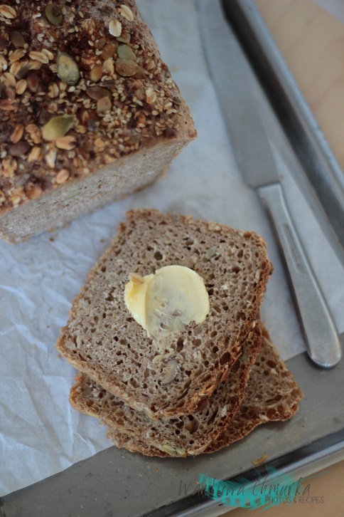 Obficie spryskać wodą wierzch chleba, by pestki i ziarna nie przypaliły się podczas pieczenia.